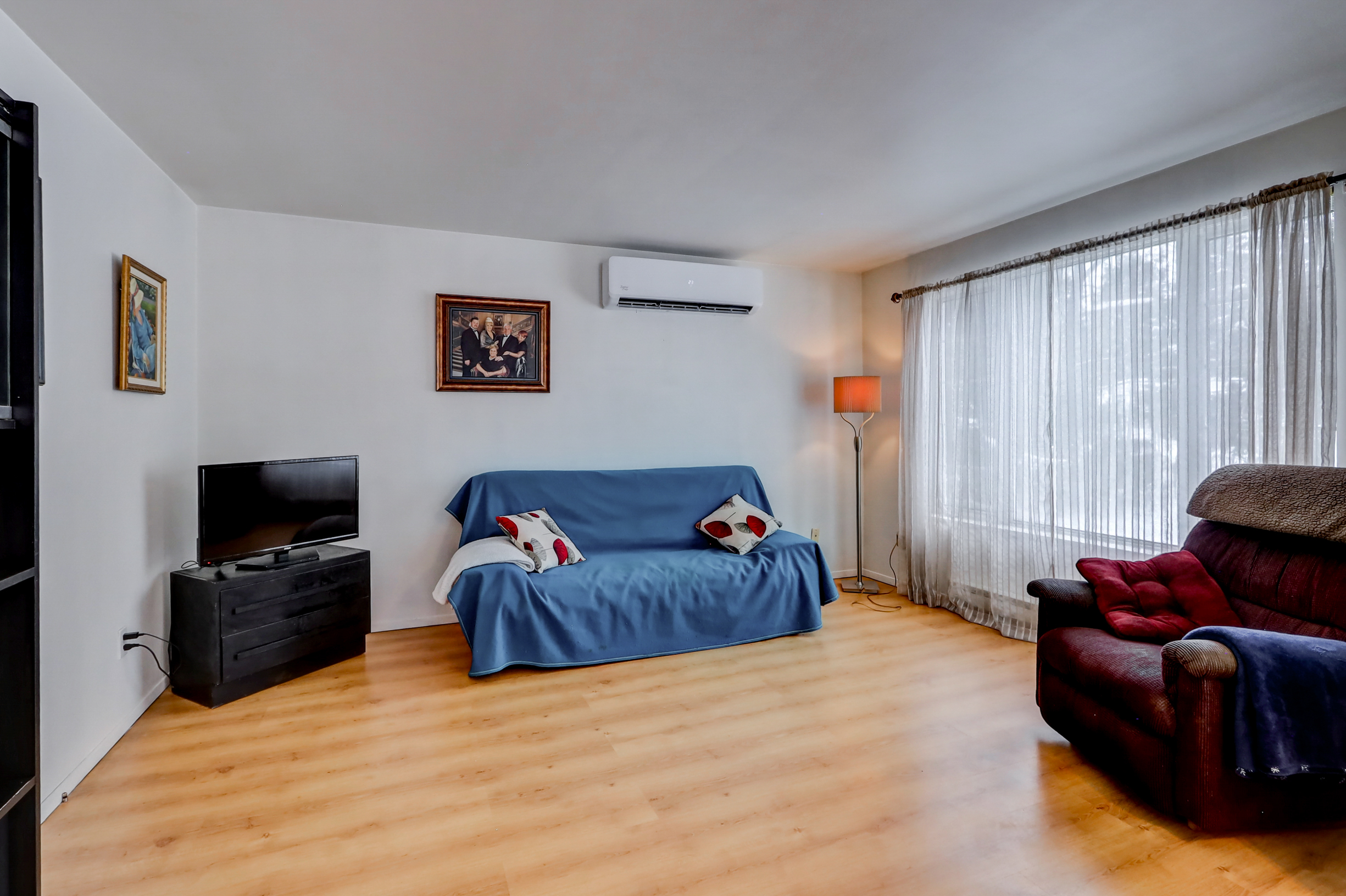 St-Colomban bord de l’eau. Visite libre dimanche le 14 décembre de 14h à 16h. Maison située sur un magnifique terrain de plus de 16 000pc sur le bord de l’eau du lac noel. Maison a aire ouverte avec 2 chambres au r.c de bonne dimension, il reste le s.sol à finir à votre gout et peut être dit rajouter 1 chambre en plus au s.sol vous avez une entrée indépendante. Le toit a été refait en 2017 et une thermopompe pour air climatisé et le chauffage a été installée en 2025. Venez vous détendre sur le bord de l’eau ou faire des activités nautiques sans moteurs à gaz.
